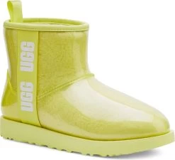 Englin’s Fine Footwear presents the women’s ‘Classic Clear Mini’ from UGG. Warm on the inside and waterproof on the outside, UGG’s Classic Clear Mini gives you the best of both worlds. Updating the iconic original, this new waterproof Classic delivers fashion, function, and feel – all in one. Lightweight and weather-rated to temperatures as low as -20 %u0366C (that’s -4%u02DAF), it offers coziness you can see with a translucent waterproof upper enclosing curly faux shearling, our signature UGGpure™ wool lining, and a removable UGGpure™ insole.